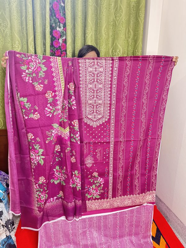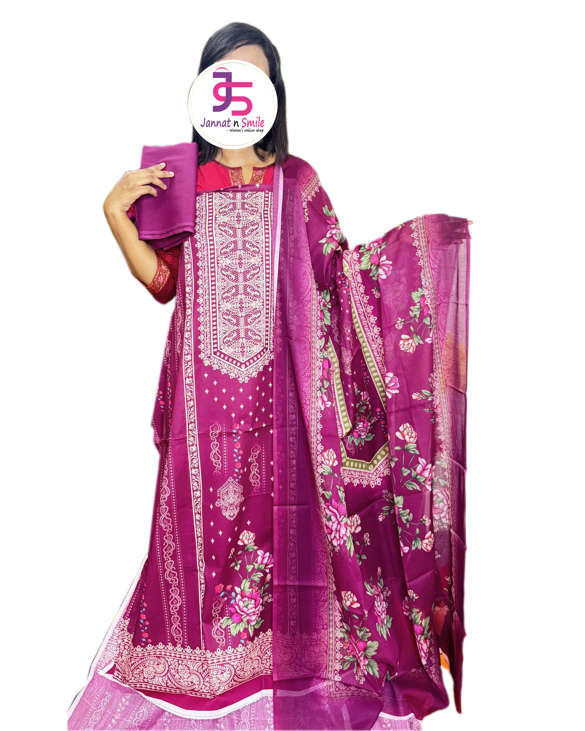 🌸✨ JS252- কালামকারী আনস্টিচ থ্রি পিস – ঐতিহ্য আর আধুনিকতার অপূর্ব মেলবন্ধন! ✨🌸